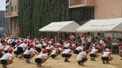 上の写真から、「大玉おくり」(全学年)、「おわりの体操」(全学年)、「結果の掲示」です。昨年度に続き、今年度も赤組が優勝しました。最後の種目の「大玉おくり」で決着がつきました(赤組 2−1 白組)。