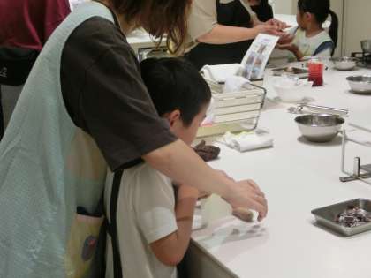 19日(土)の午後、ハグミュージアムにて「PTAファミリークッキング」が開催されました。今年も定員いっぱいの申し込みをいただき、ありがとうございました。献立は「Wチョコスイーツ」で「サクうま!ブラウニー」と「チョコしらたま」を楽しく料理しました。どちらもとてもおいしくできあがりました。