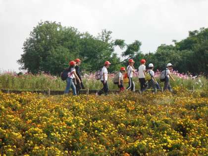 子どもたちは14のたてわり班に分かれ、6年生を中心にみんなで力を合わせて頑張りました。1年生の歩くペースに合わせて、秋晴れの鶴見緑地公園の自然の中を一生懸命、探索しました。