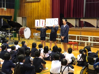 今朝の児童集会は音楽集会でした。最初に、先週の赤い羽根共同募金の募金額の発表があり、児童代表へ大阪府共同募金会からいただいた表彰状の授与が行われました。募金額は11,400円でした。ご協力、ありがとうございました。音楽集会では全校児童で「にじ」を歌いました。講堂の中を子どもたちの元気いっぱいの声が響き渡りました。
