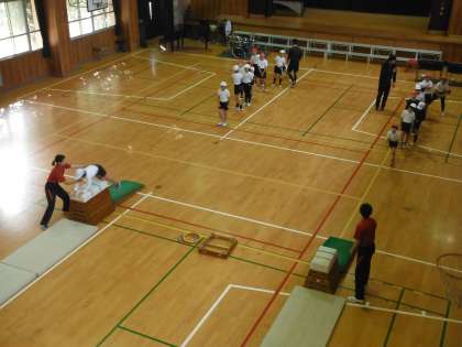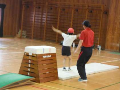 先週に引き続き、11月14日(木)の午前中、西区体力向上支援事業の一環として、インストラクターを派遣していただきました。2校時に3年生が跳び箱、3校時に4年生がマット運動の授業を受けました。