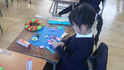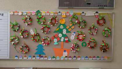 玄関ホールの掲示です。1年生の作品です。一人一人が学習園で育ててきた綿花をとても上手に使用しています。来校時にぜひじっくりとご覧ください。