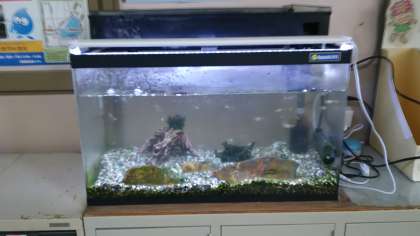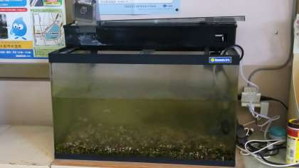 職員室横の水槽も昨日〔1月6日(月)〕にきれいにしました。魚の子どもがたくさん生まれているのですが、一匹一匹、とてもよく観察できます。休み時間や下校時にたくさんの子どもたちがのぞいている、人気のコーナーです。