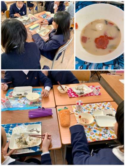 子どもたちは、家で食べたぞう煮を思い出しながら食べていました。