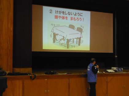 1月11日(土)の1校時の防災講座の中で、地震発生時の注意事項として、大阪市危機管理室のアドバイザーから子どもたちにお話をしていただいたのは以下のとおりです。学校でも繰り返し指導を行いますが、ご家庭でもよろしくお願いします。