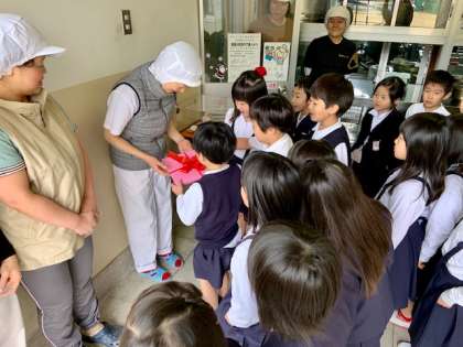 手紙を受け取った給食調理員さんから「これからもおいしい給食をつくります!」と言っていただき、1年生はうれしそうにしていました。