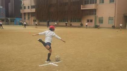 本日〔1月22日(水)〕の5校時、サッカーの授業を行いました。みんなでボールに慣れる練習を行った後、大きく蹴りだす練習を行いました。上手な児童のフォームをみんなで見て、良いところを発表しました。勢いがある球や高い球を蹴ることができる様になりました。