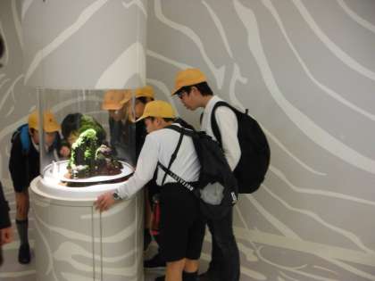 ※写真は上から「ワンダーモーメンツ」、生きものたちの「かくれる」能力のコーナー、「水辺にふれる」コーナー(頭上にホワイトタイガーがいます)です。