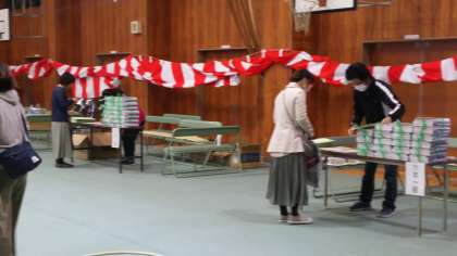 ※当日はマスクを着用の上、教科書複数冊が入る袋をご持参ください。またきょうだい関係で複数セットを持って帰られる場合等、自転車でお越しいただいても構いませんが、必ず校内に駐輪してください。