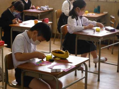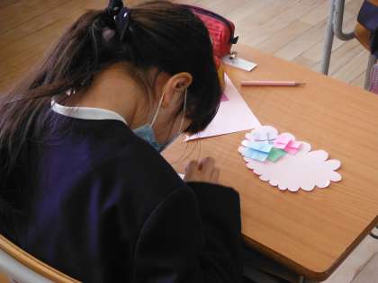 本日の2時間目にあじさいの花を作りました。一人ひとり、好きな色紙をつかって一生懸命に作っていました。みんなの花を合わせて、教室か校内で大きく掲示する予定です。とてもきれいな作品ができそうで、すごく楽しみです。