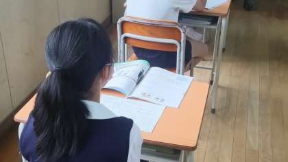 本日の6年2組の授業風景です。2組も国語、算数、家庭科の授業を行っています。