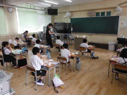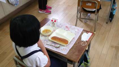 早速、スープの「おかわり!」の声があがりました。おいしかったかな?お家で子どもたちとお話ししてください。