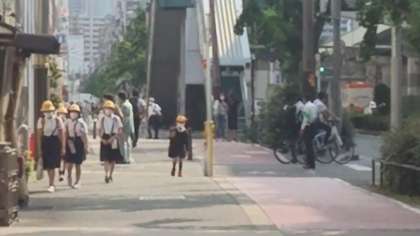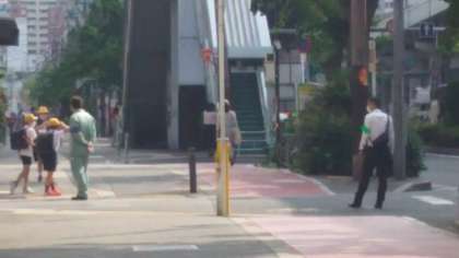 ※写真の右の方に緑色の腕章をされているのが警察官の方です。