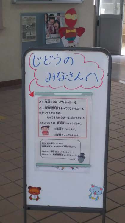今週からは検温もれ、健康管理表での記録もれの児童以外は教室で健康観察を行っています。家庭での確認もれがある児童は職員室前で検温等の健康チェックを受けてから教室へ移動します。今日で四日間連続での登校となりました。少しづつ、職員室前の椅子に座る児童が増えてきています。基本的な生活リズムの定着を引き続きよろしくお願いします。