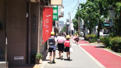 ※写真は本日の下校風景です。左の写真の自転車(後ろ姿)の方は西警察署のスクールサポーターの方です。朝も校区内を巡視していただきました。