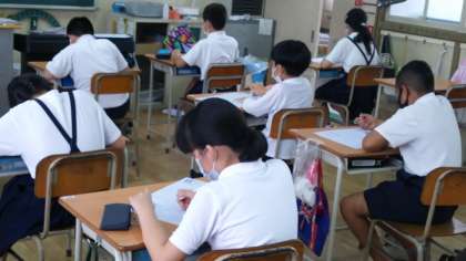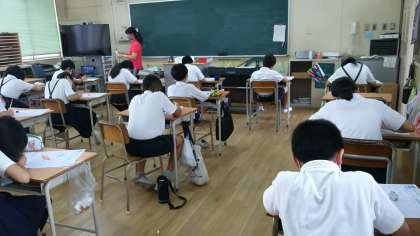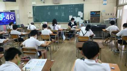 6年生は1組も2組もテストを行っていました1組は社会、2組は国語でした。みんな、集中して取り組んでいました。