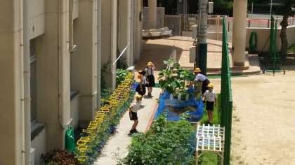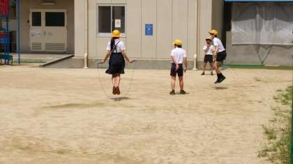 本日から時間を指定して、午前中の休憩時間には運動場に出ることができる様になりました。1校時終了後の休憩時間は1年生と2年生、2校時終了後は3年生と4年生、3校時終了後は5年生と6年生です。ボール遊びや鬼ごっこ等の接触する遊びは禁止です。写真はなわとびをする4年生と学習園を観察している3年生です。下の写真は子ども新聞の掲示を見ている6年生です。