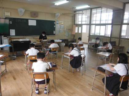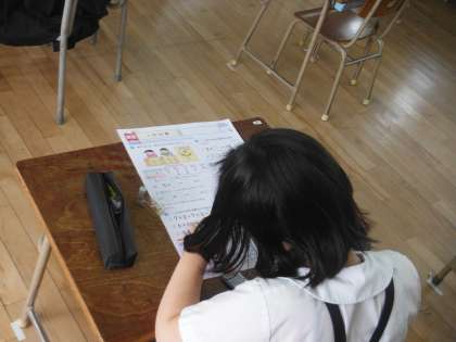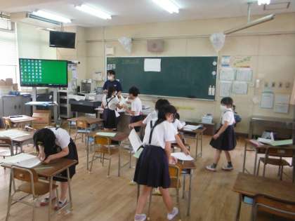 3年生も今年度初めての午後の授業を受けました。算数のプリントに取組み、残りの時間でノートを整理したり、プリントをファイルに綴じたりしました。役割分担していて、とても手際よくできていました。