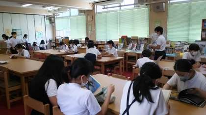 本日のお昼の休憩時間(15分間)、子どもたちが待ちに待った、図書室を開放しました。読書の前と後に手を消毒し、マスクは着用します。全体の約3分の1の子どもたちが集まってくれました。学校休業が始まった2月29日(土)から図書室は閉めたままでした。学校休業や分散登校の時も使用していません。子どもたちはどの子も、3月に入った新しい本やお気に入りの本を手に取り、時間いっぱい、とても静かに読みふけっていました。