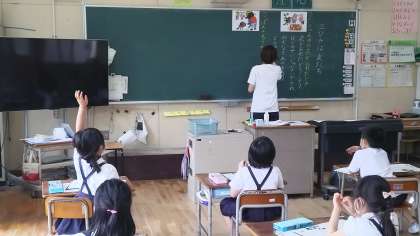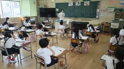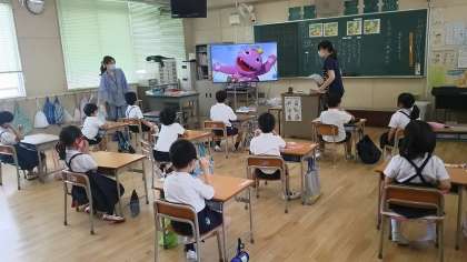 本日〔6月29日(月)〕の道徳の授業風景です。上の写真が1年生で、中央と下の写真は2年生です。1年生の授業は「もりのプレゼント」、2年生は「三びきは友だち」です。今日(いじめについて考える日)は全クラスで道徳の授業を行っています。習ったことについてお家でお話をしてください。