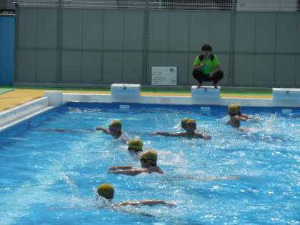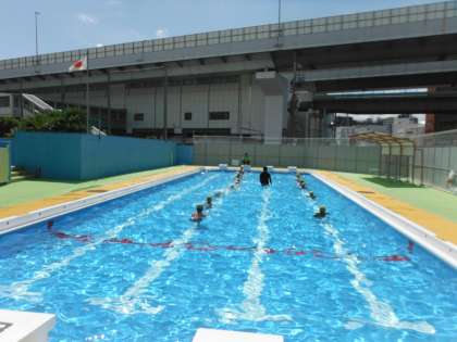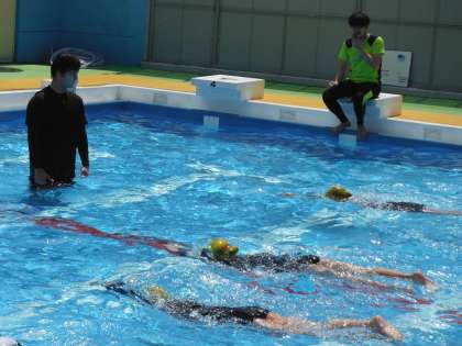 本日〔7月2日(木)〕の2校時、5年生の水泳指導がありました。今日は今年初めてのプールでしたので、水に慣れる内容の授業でした。天気も良く、新しくなったプールにみんな、大喜びでした。