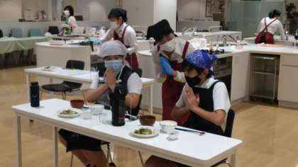 料理が完成しました。自分で作ったご飯です。みんな、「とってもおいしい!!」と大喜びでした。もちろん、おかわりをして完食です。