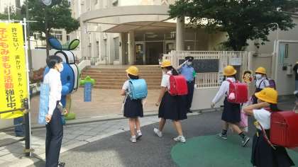 6月1日(月)に新聞等で報道もありましたが、交通安全のモデル校として交通安全指導に重点を置いた取り組みを行っています。例年、年度初めに来校いただいて、1年生と2年生を対象に交通安全教室を開催するのですが、今年は新型コロナウィルス感染症の関係で学校に出向いての指導が困難な状況です。しかしながら、今回、西警察署の交通安全課にご相談させていただき、今までとは違う形で、7月15日(水)の6校時と下校時に交通安全指導を行っていただくことになりました。西警察署と共に大阪府警本部、大阪府交通安全協会にもご協力・ご来校いただきます。当日、在宅の保護者のみなさまは時間になりましたら、玄関先や近くの通学路まで出ていただき、子どもたちを見守り、迎えてあげてほしいと思います。
