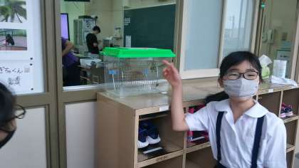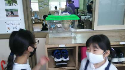 こどもたちの様子です。羽がしっかりとかわくのを待って、みんなで大空に放ちます。