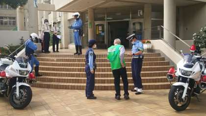 昨日〔7月15日(水)〕は新型コロナウイルス感染症予防の関係でたくさんの制限がある中、西警察署・大阪府警の交通安全課と大阪府交通安全協会のみなさんに相談させていただき、可能な範囲で最大限のご協力をいただきました。通学開始から日が浅い、1年生にもとても分かりやすい指導を具体的に行っていただき、本当にありがとうございました。これからも地域と家庭、学校が力を合わせて安心・安全な学校運営を続けてまいります。みなさまのご理解とご協力をよろしくお願いいたします。