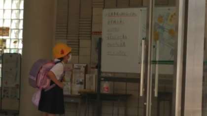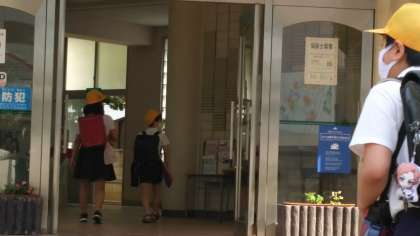 今朝〔7月21日(火)〕の登校時の様子です。玄関ホールに掲示している「交通事故発生地図」を何人もの子どもたちが見てくれていました。お家でもしっかりと見ておくようにお話ししてください。また、しばらくの間、掲示しておきますので、来校時にご覧ください。