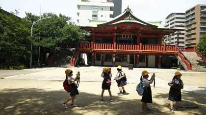 7月22日(水)の午後、2年生は校区内の「たんけん」に出かけました。通学路に沿って移動し、地下鉄の陸橋を通ってナインモールと茨住吉神社を訪問しました。