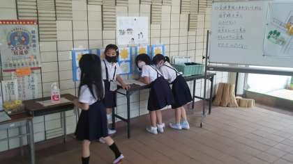 雨や暑さの為に運動場で遊べない日が続いており、先週から休憩時間には子どもたちが校内でクイズを解いています。運営委員会が「児童会クイズ」を作ってくれて、階段のところに19問、貼ってあります。