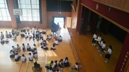 本日の児童集会は「イントロクイズ」でした。ピアノの伴奏を聞いて、曲名(アニメの名前でもOK)を当てました。「ドラえもん」や「パプリカ」、「鬼滅の刃」、校歌が流れた時には「♪西大阪の〜」と自然と歌声が出ていました。