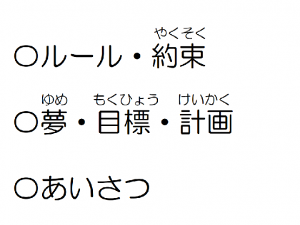 ・一つ目は「ルール」「約束」をみんなで守ろうということです。