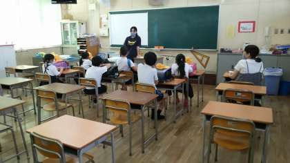 ・昨日〔8月26日(水)〕の6校時、台風接近を想定した避難訓練を行いました。まず、地域班(登校時の班)の班長が1年生を教室まで迎えに行き、地域班毎の教室に集合しました。集合確認後、地域担当の先生から注意事項の指導を行い、終了後に先生と一緒に集団下校しました。