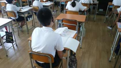 8月29日(土)の土曜授業の様子です。下の写真は理科室での実験後、教室での授業風景です。理科室は空調がありませんので、段取り良く、実験のみを行い、実験終了後は教室へ移動します。6年生もしっかりと学習できました。
