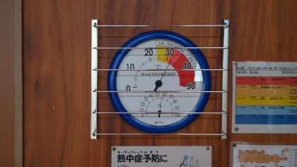 ・暑さ対策の為、先週に引き続き、今朝の児童集会も中止にしました。換気をする前ですが、8時半過ぎ、講堂の温度計は32度を指していました。