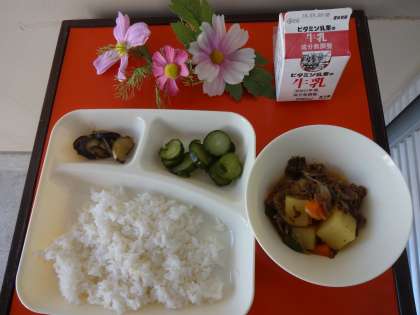 ・昨日のクイズは「じゃがいも」でした。昨日の給食の「肉じゃが」の中に入っていました。「肉じゃが」も、みんなが大好きなメニューの一つです。
