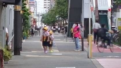 今朝も九条東連合振興町会の女性会の方に見守り活動を行っていただきました。暑さが残る中、本当にありがとうございました。