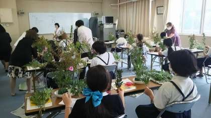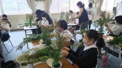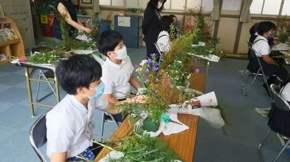 ・9月11日(金)の午前中、教育委員会からの出前授業で生け花を体験しました。