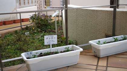 「花と緑の農芸財団」よりご寄附いただいた花の苗を各学年児童が、玄関や学習園の花壇に植えました。管理作業員さんがすてきな白い柵も整備してくれました。3学期にはたくさんの花を咲かせてくれるでしょう。