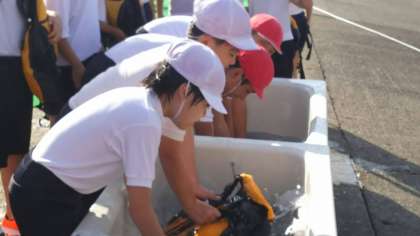 最後に自分が使ったライフジャケットを洗って、いかだ体験は全て終了しました。
