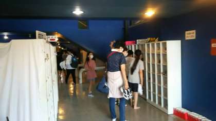 朝の集いから帰りに、写真を撮りました。