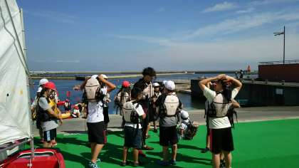 ライフジャケットを身につけ、出港の時刻を待ちます。
