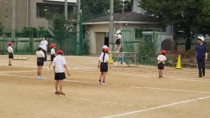 ・昨日〔10月7日(水)〕の5校時、低学年は予行演習を行いました。本日〔10月8日(木)〕と明日が雨の予報でしたので、昨日までに他の学年も全演目を通しで行っています。