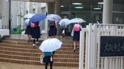 ・先程、各クラスの出席と欠席の確認を終えました。雨天時の登校指導、ありがとうございました。