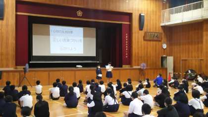 ※本日、9月14日(月)以来の全児童が講堂に集まっての全体朝会を行いました。