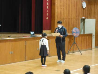 本日〔10月19日(月)〕の全体朝会(学校長講話・表彰)