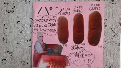 ・黒糖パンの重さは低学年が80グラム、中学年が100グラム、高学年が120グラムです。