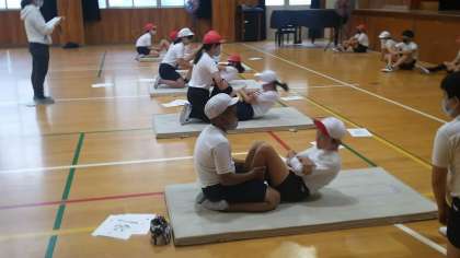 ・写真は上から11月2日(月)の上体おこし、11月4日(水)の50メートル走です。どの種目も一生懸命、がんばりました。小学校生活最後の記録がどうだったか、おうちで話題にしてください。